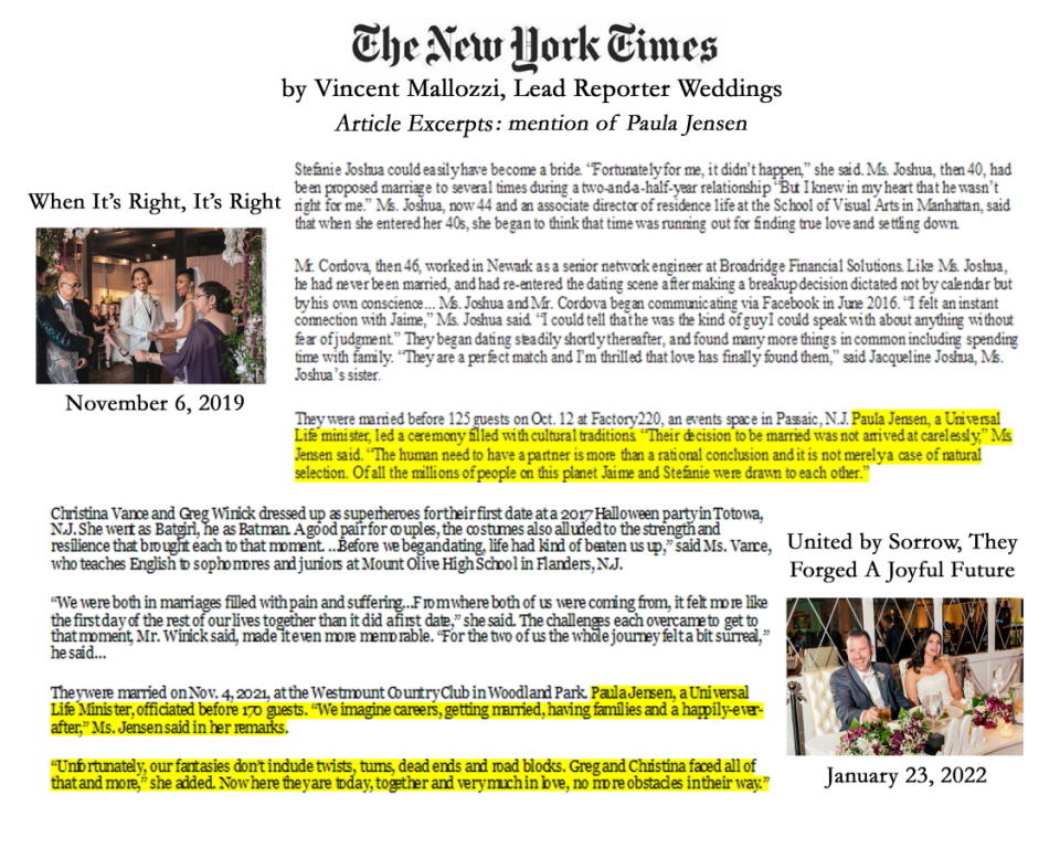 The New York Times rarely mentions officiants. However, this is no more important than a personal note from a happy couple.